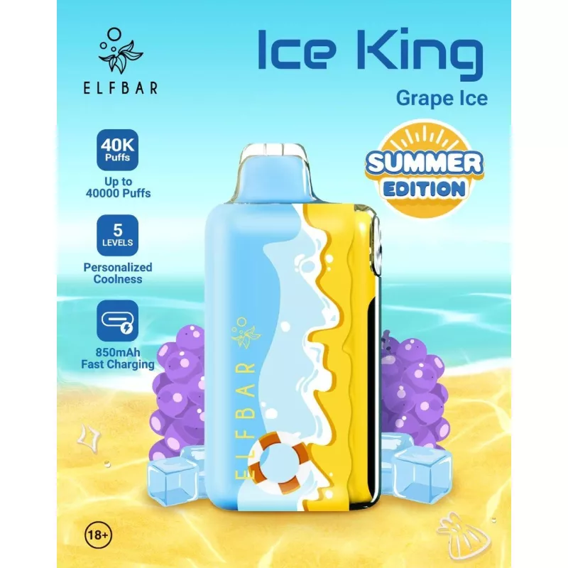 ELFBAR ICE KING Summer Edition — Grape Ice — это одноразовый вейп с насыщенным виноградным вкусом и выраженным охлаждающим эффектом.